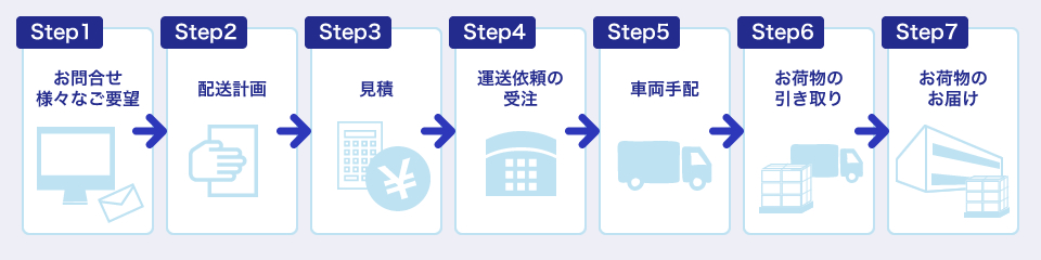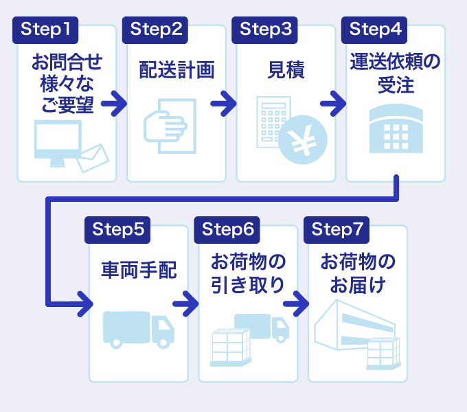 急な出荷による緊急のご依頼にも、私どもの豊富な配車経験と機動力を活かし、お客様の大切な商品を正確にお届けします。
